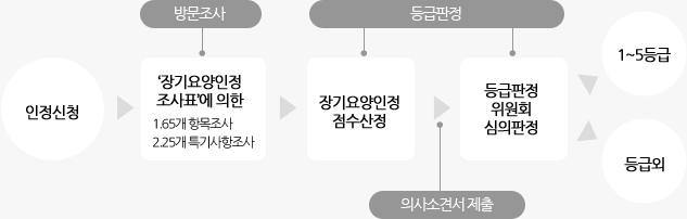 일정한 절차에 따라 장기요양급여를 받을 수 있는 권리(수급권)가 부여되는데 이를 장기요양인정이라고 합니다